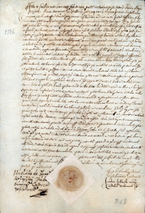Pismo urzędowe uwierzytelnione pieczęcią starosty Rafała Leszczyńskiego z 15 kwietnia 1688 roku