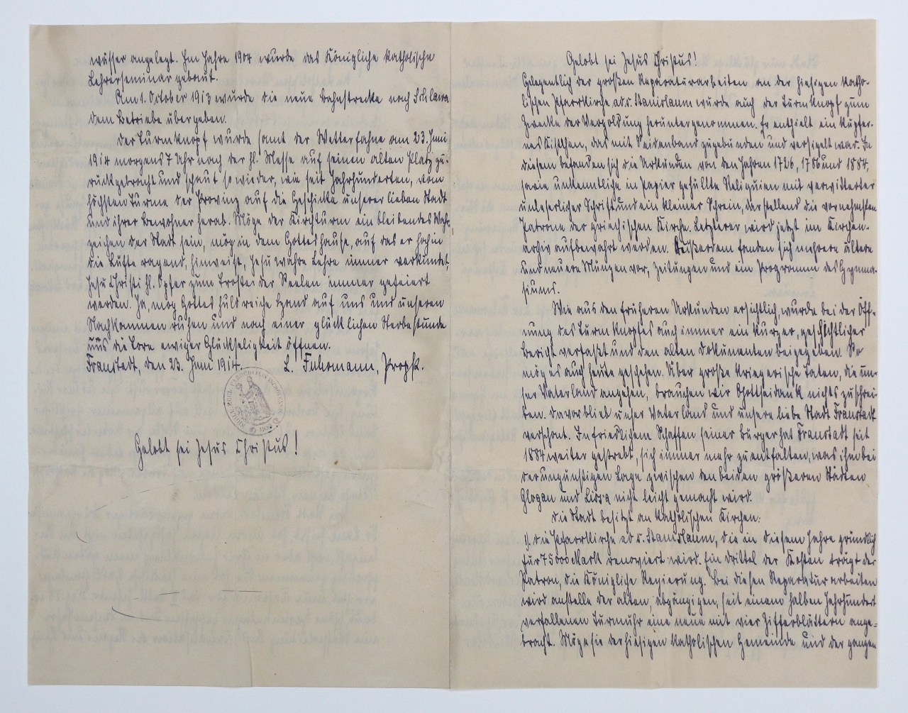 Pismo pochodzi z czwartego wkładu do kapsuły czasu. Jego autorem jest Leo Furhmann, proboszcz wschowskiego kościoła parafialnego. Na początku pisma autor wspomina kolejny remont i ściągnięcie kuli w celu ponownego jej złocenia. Następnie, wzorem swoich poprzedników, zdaje sprawozdanie historyczne i opisuje historię Wschowy z lat 1884-1914. Pisze o rozwoju miasta, wspomina też między innymi instalację oświetlenia gazowego czy budowę systemu kanalizacji. Wymienia świątynie katolickie w mieście i osoby, które wchodzą w skład zarządu kościoła. List kończy życzeniami dla miasta, mieszkańców i potomnych. Na końcu pisma umieszczona jest data: 3 czerwca 1914 roku