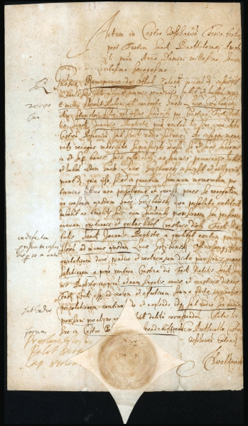 U dołu dokumentu przystawiona jest pieczęć opłatkowa starosty Przecława Leszczyńskiego, a po prawej stronie pięczeci - podpis regenta Jana Chwałkowskiego, twórcy dokumentu.